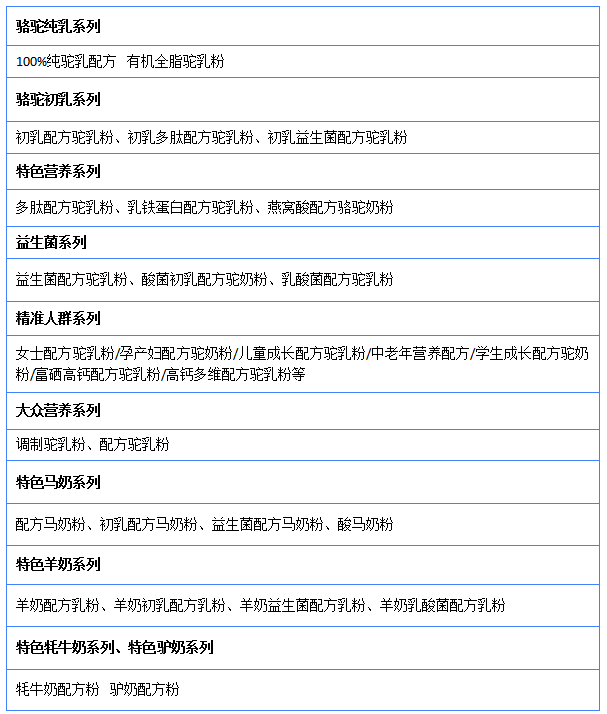 骆驼奶、马奶、牦牛奶、驴奶、羊奶等多种特色乳制品产品形态